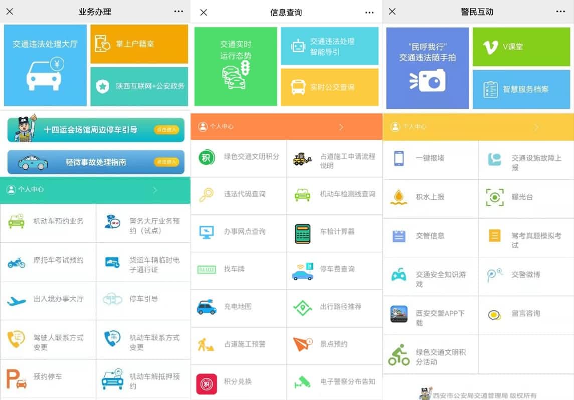 西安交警整合打造公众服务矩阵 ,借助“西安交警”微信公众号、订阅号、12123服务平台等 ,先后上线随手拍、微信挪车、无邪车预约、无邪车六年免检、智慧提醒等81项便民服务 ,线上累计服务一亿多人次。让惠民服务更好地触达公众 ,让数据替群众跑路。