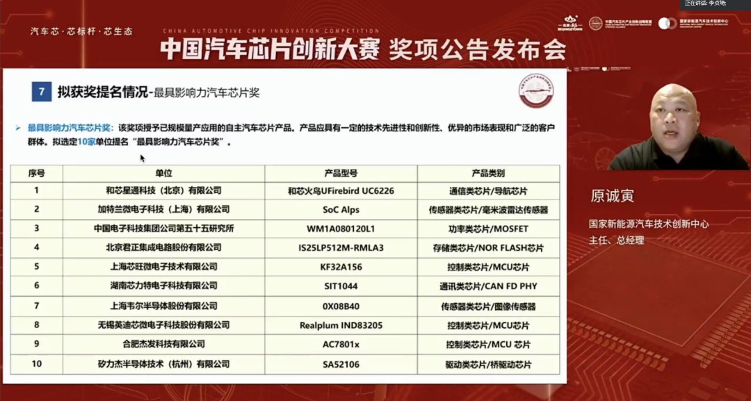 图:中国汽车芯片立异大赛奖项通告宣布会-线上聚会