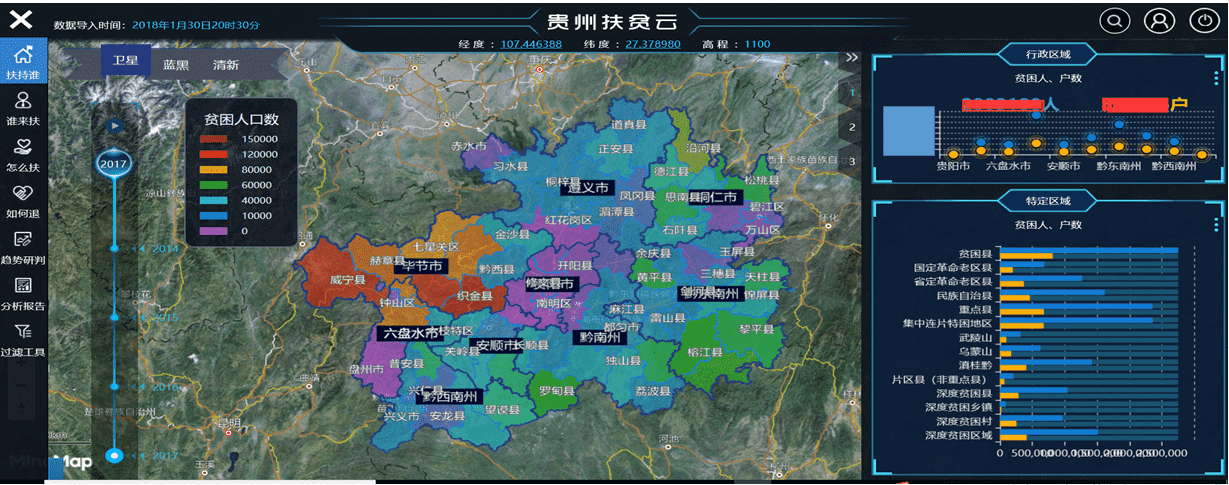 2017年,K1体育正式宣布MineData位置大数据平台,并于随后为交警、交通、公安、物流、包管、气象、运营商、都会妄想等多个政企偏向提供了一系列解决计划,2017年底,MineData联手贵州省扶贫办,升级刷新了贵州全省“扶贫云”平台,大数据平台有用的将贫困户、扶贫干部、扶贫步伐、脱贫妄想以及相关行业数据的时空信息举行融合及整理,并通过定制化的剖析和运算,以数字化的形式直观地实现精准扶贫的“挂图作战”。立异性实践了互联网+科学精准扶贫新模式,以帮助谁、谁来扶、怎么扶、怎样退为思绪对贫困生齿、项目资金等举行剖析,扶贫干部位置漫衍举行地图可视化显示,实现大数据精准扶贫。