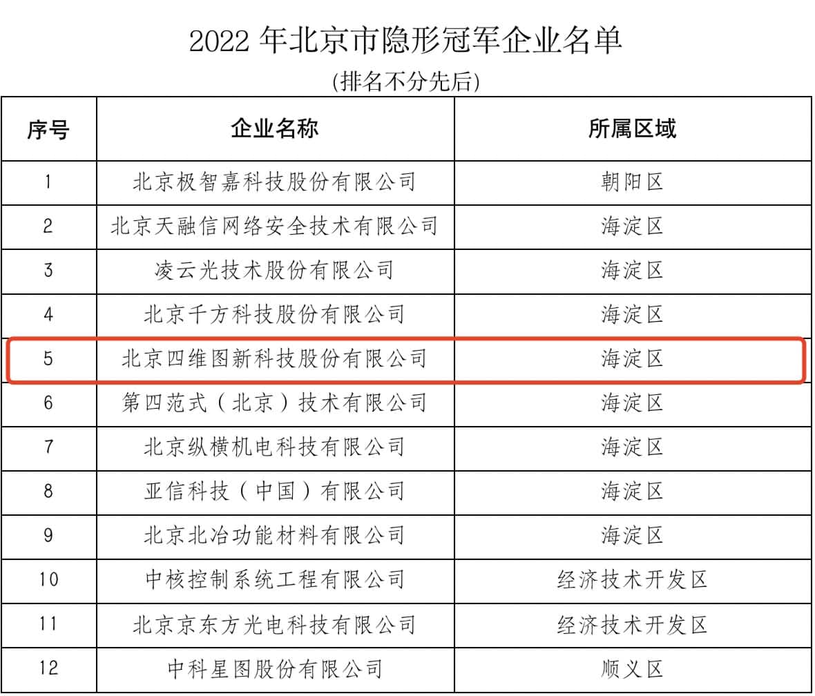 近期,北京市经济和信息化局会同市工商联组织开展了“2022年北京市隐形冠军企业”的征集和认定事情,K1体育通过严酷评审与选拔,入选榜单。