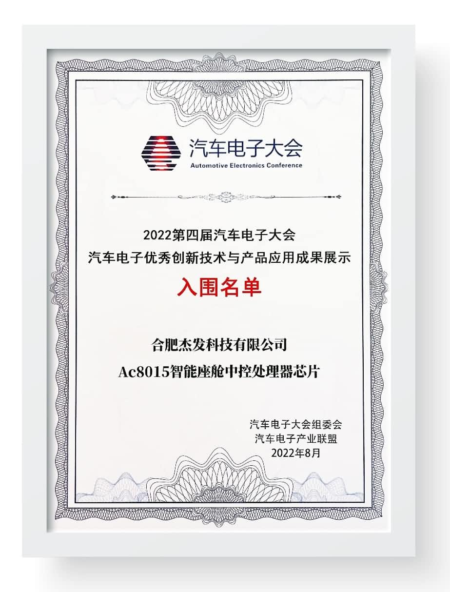 本次大会,杰发科技首颗智能座舱中控处置惩罚器芯片AC8015入围“汽车电子优异立异手艺与产品应用效果奖”,以一定AC8015智能座舱芯片领先的手艺和普遍的应用。AC8015是杰发科技首款自主研发的车规级座舱SoC芯片,可用于开发一芯多屏入门级座舱、车载信息娱乐系统、Display Audio、3D液晶仪表等座舱域产品。AC8015已与海内外十余家系统供应商合作,累计出货量数十万颗,量产车型十余款。
